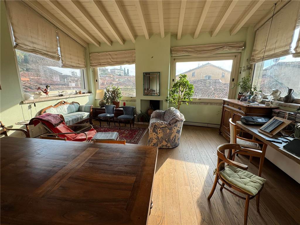 Centro storico ai piedi del castello all'interno di una porzione di casa di sole 3 unita' meraviglioso appartamento ultimo piano con ascensore disposto su 2 livelli ,al secondo piano ingresso con zona notte di circa 65mq con 2 camere e 2 bagni al terzo piano meravigliosa altana di circa 50mq con vista panoramica dove e' posta la zona giorno con la cucina. Al piano terra completa la proprieta' un grande box auto e una zona lavanderia cantina. L 'immobile e' stato integralmente ristrutturato circa 20 anni fa quindi necessita' a seconda delle esigenze di alcuni lavori di ammodernamento. La soluzione e' unica per la vista meravigliosa e per la sua indipendenza. La richiesta e' di 440.000 Euro c.e.F75kw/hm2 IMMOBILIARE VENEZIA 030.292270